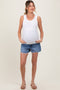 Blue High Rise Frayed Hem Maternity Denim Shorts