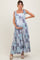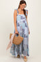 Blue Patchwork Print Shoulder Tie Tiered Maternity Maxi Dress