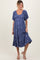 Blue Ribbon Print Smocked Maternity Midi Dress