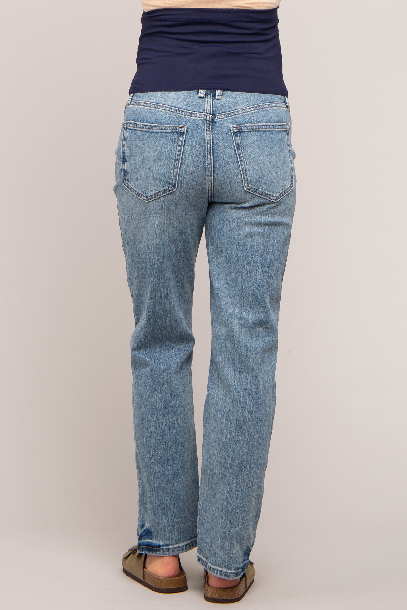 Blue Slightly Distressed Straight Leg Maternity Jeans