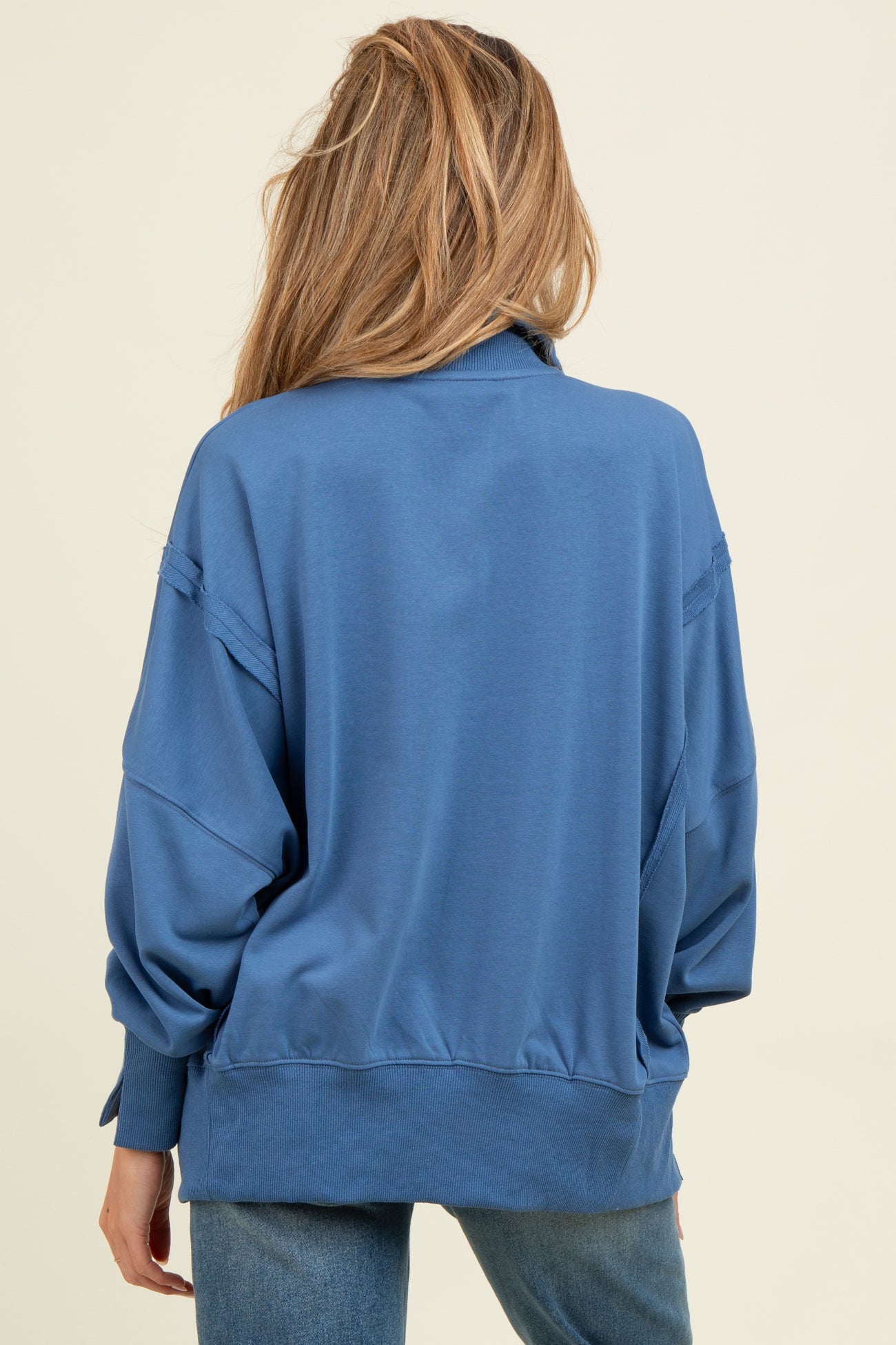 Blue Snap Button Pullover Henley Maternity Sweatshirt