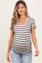 Blue Striped Balloon Sleeve V-Neck Maternity Dress