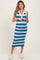 Blue Striped Knit Sleeveless Polo Maternity Midi Dress