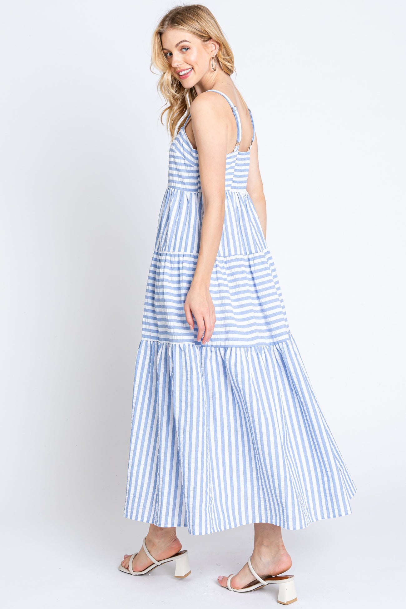 Blue Striped Sleeveless Tiered Maxi Dress