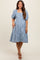 Blue Textured Floral Square Neck Puff Sleeve Maternity Dress