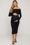 A crepe knit maternity top featuring a v-neckline and short dolman sleeves.