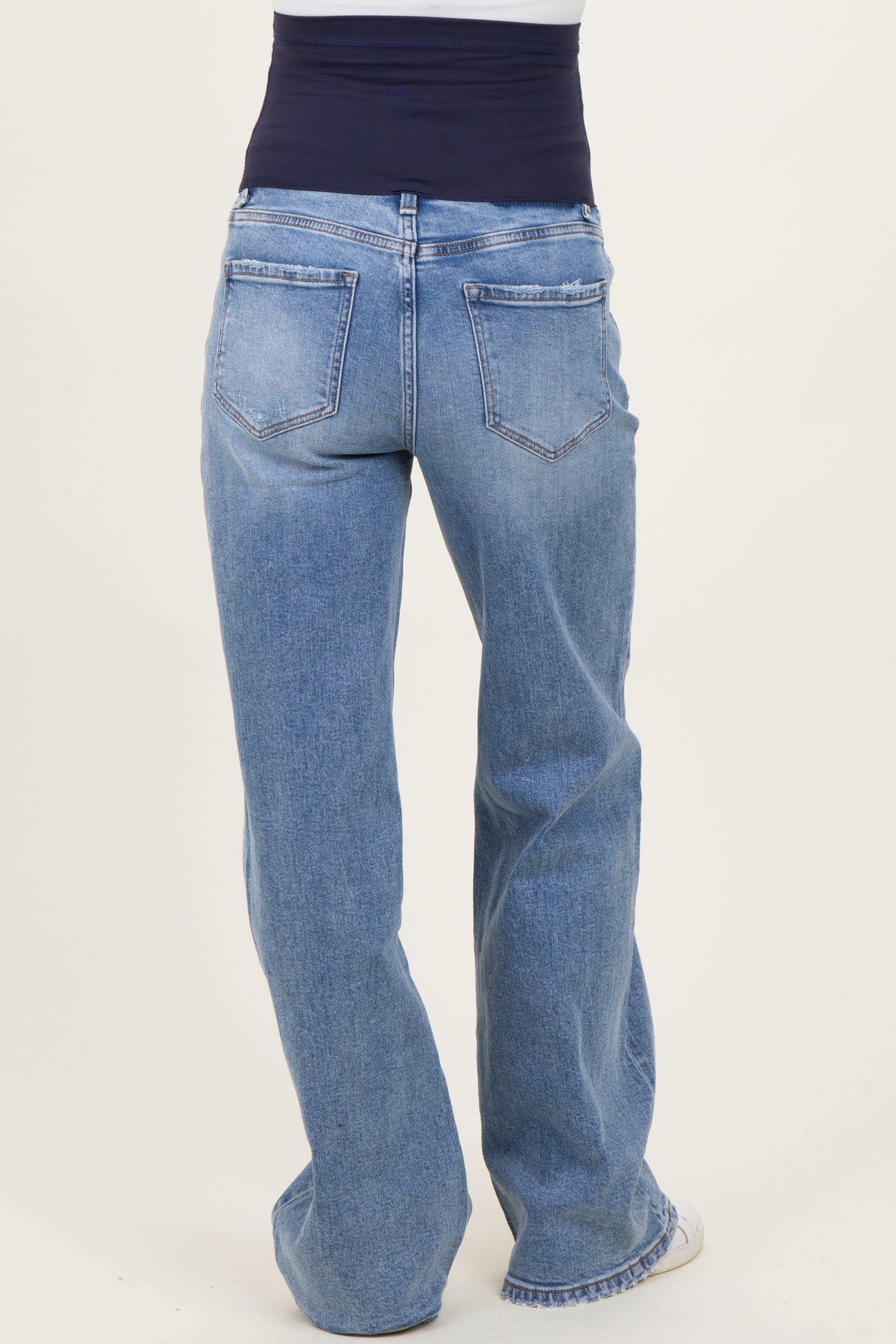 Blue Vintage Wash Wide Leg Maternity Jeans