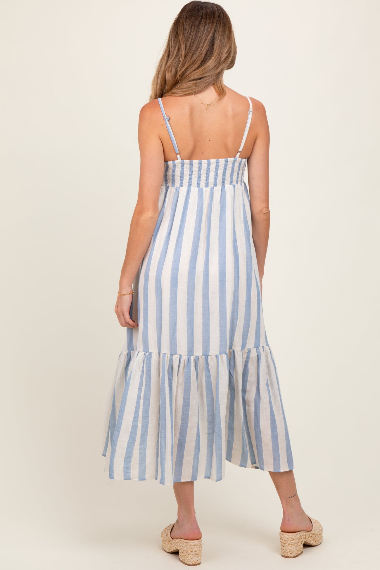 Blue Wide Stripe Linen Blend Sleeveless Maternity Maxi Dress