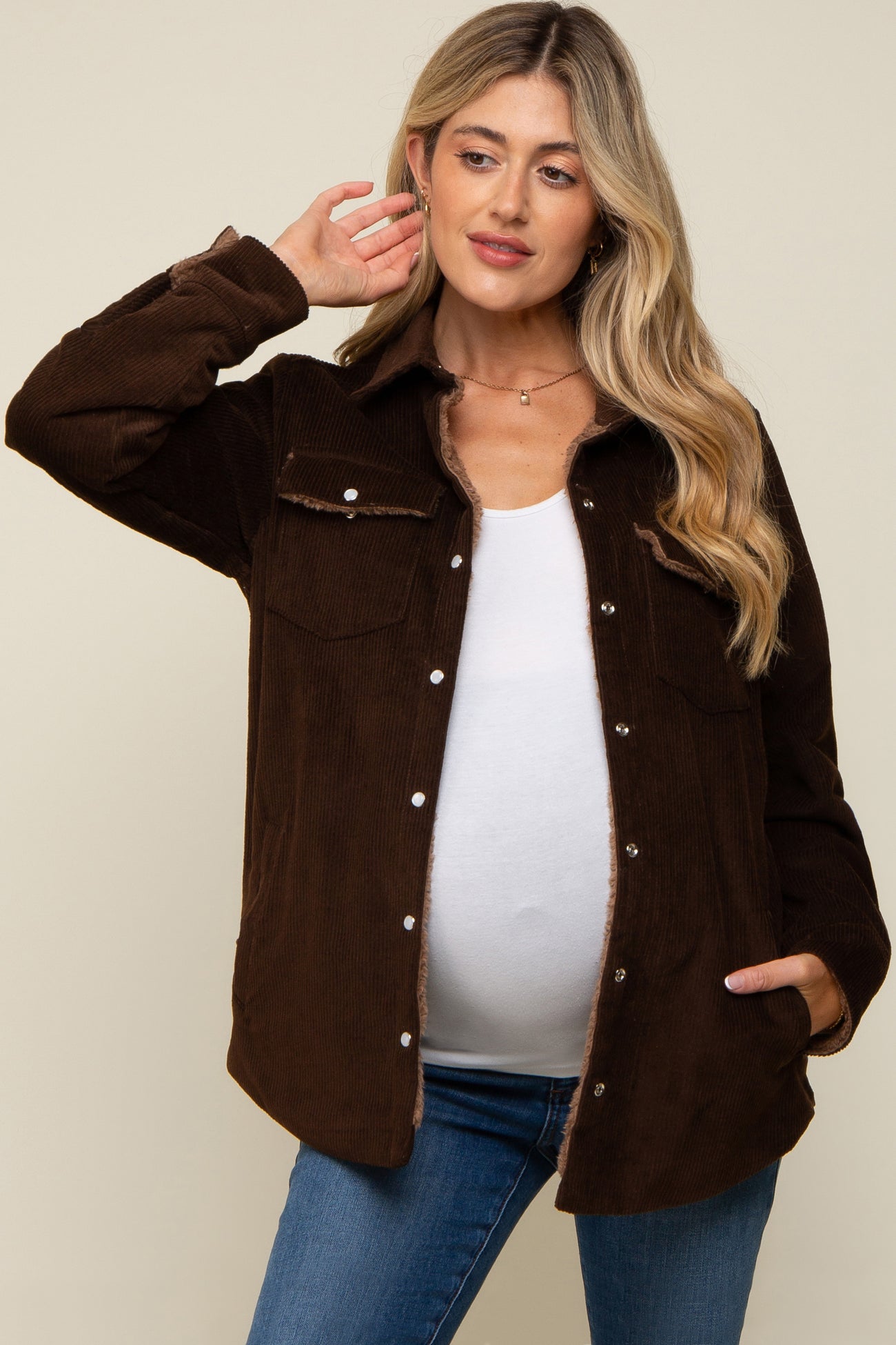 Brown Corduroy Sherpa Lined Maternity Shacket