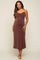 Details A knot maternity midi dress with adjustable straps and a cowl neckline. Content + Care
