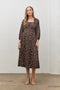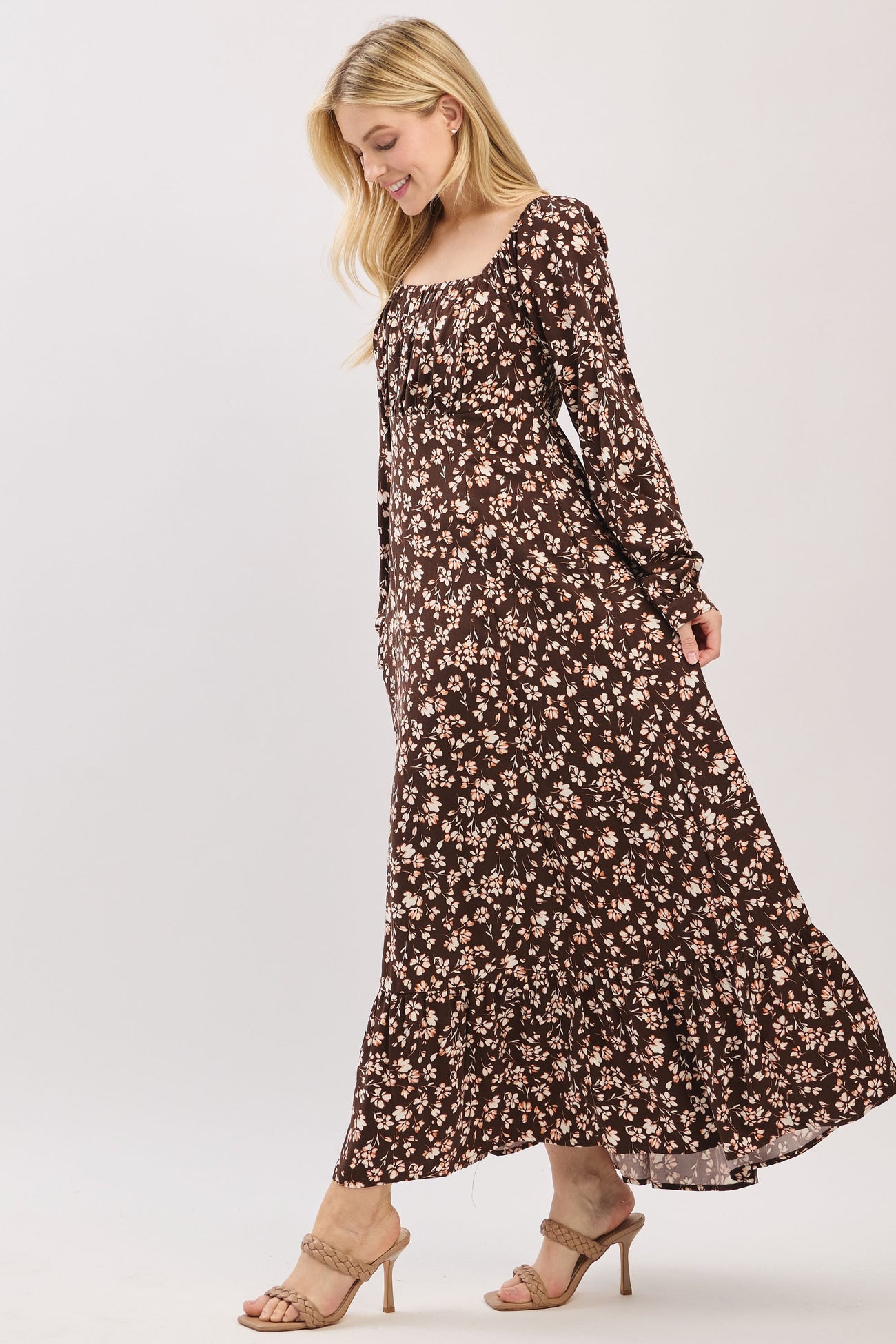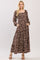 Brown Floral Square Neck Long Sleeve Maxi Dress