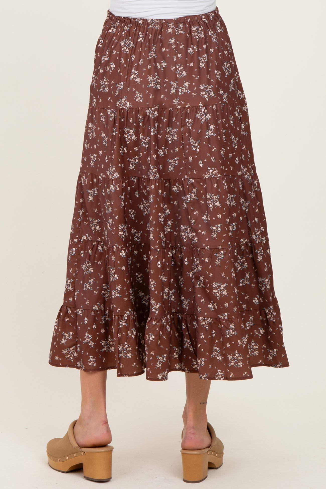 Brown Floral Tiered Maternity Maxi Skirt