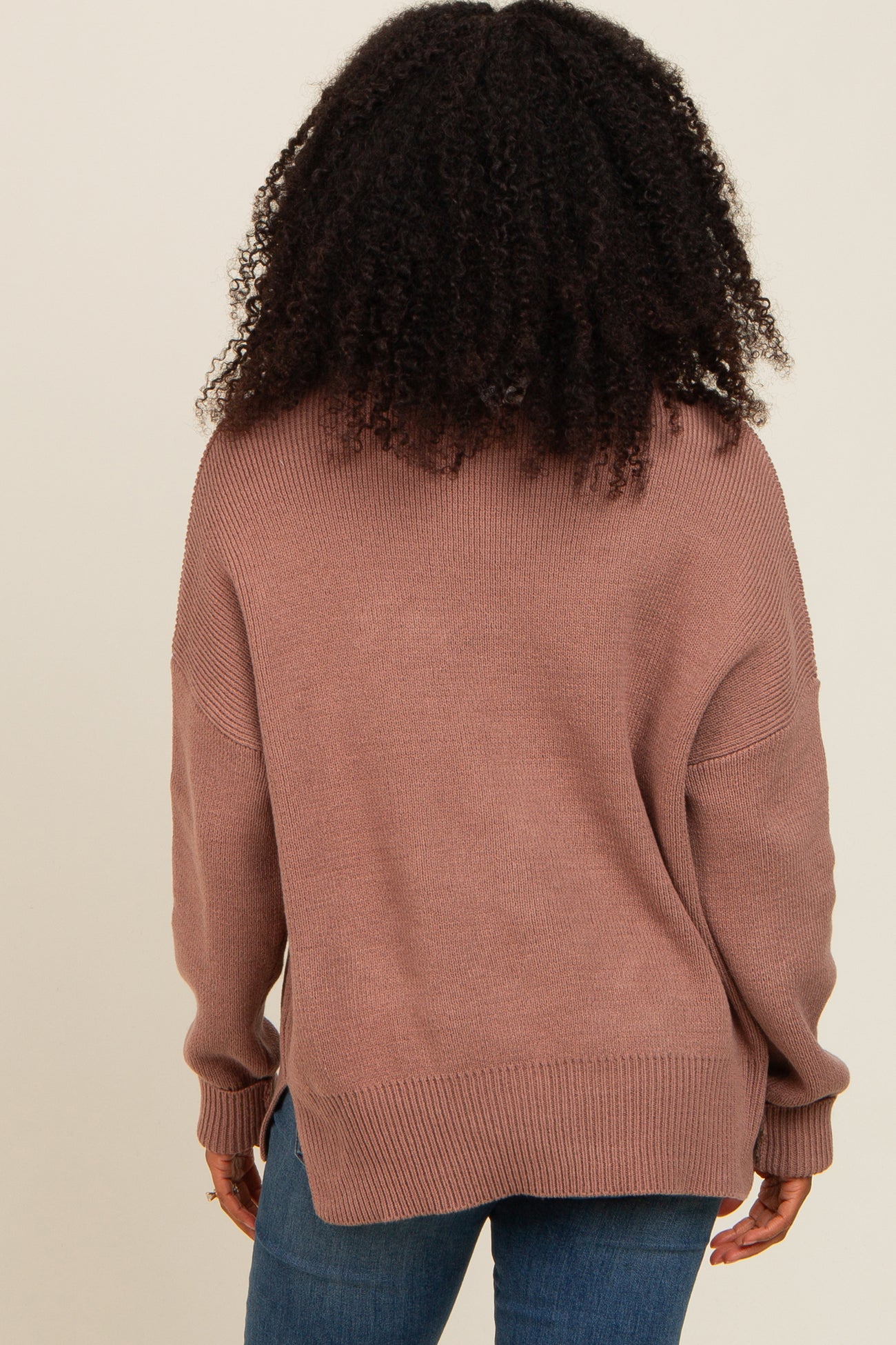Brown Mock Neck Basic Sweater