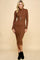 Brown Ribbed Mock Neck Button Side Slit Midi Dress