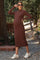Brown Ruffle Mock Neck Long Sleeve Maternity Midi Dress