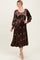 Brown Velvet Embroidered Floral Midi Dress