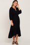 Details A solid long sleeve blouse with a v-neckline and bubble sleeves. Content + Care