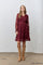 Burgundy Embroidered Lace Smocked Long Sleeve Dress
