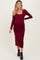 Burgundy Scoop Neck Long Sleeve Maternity Midi Dress
