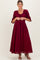Elevate your maternity wardrobe with this elegant Burgundy Smocked Ruffle Square Neck Maternity Midi Dress. Crafted with soft, breathable fabric, it offers comfort and style throughout pregnancy. The smocked bodice gently hugs your curves while providing flexible support, and the flattering square neckline with delicate ruffle trim adds a feminine touch. With three-quarter puff sleeves and a flowing midi-length skirt, this dress combines sophistication with ease of movement. Perfect for casual outings, special occasions, or maternity photoshoots, it’s designed to grow with you. Pair it with sandals or heels for a chic, timeless look.