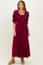 Burgundy Smocked Ruffle Square Neck Midi Dress