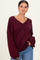 Burgundy V-Neck Drop Shoulder Maternity Sweater