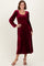 Burgundy Velvet Smocked Long Sleeve Midi Dress