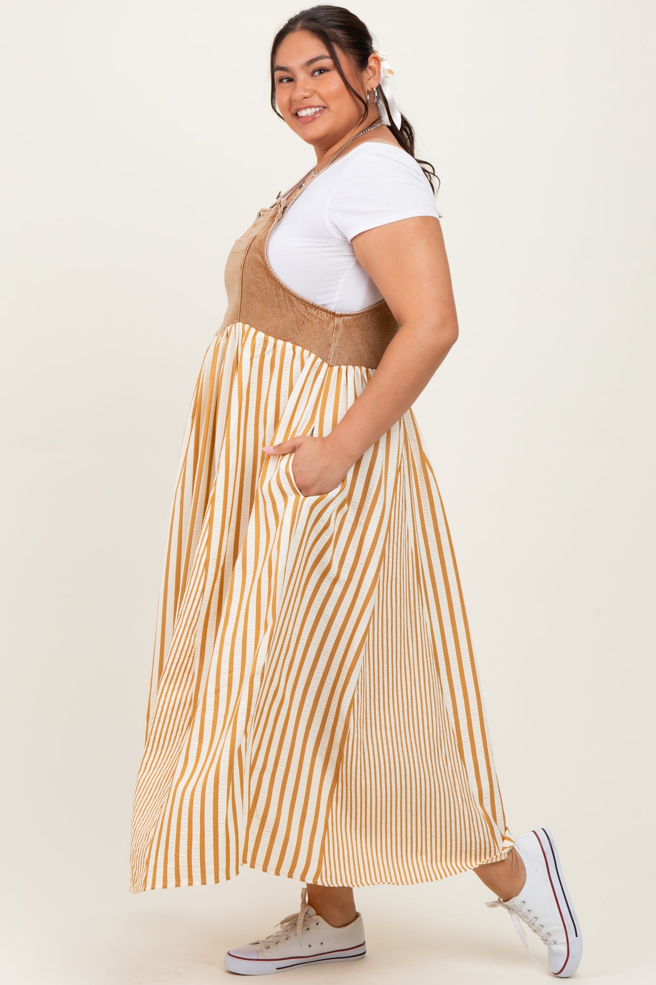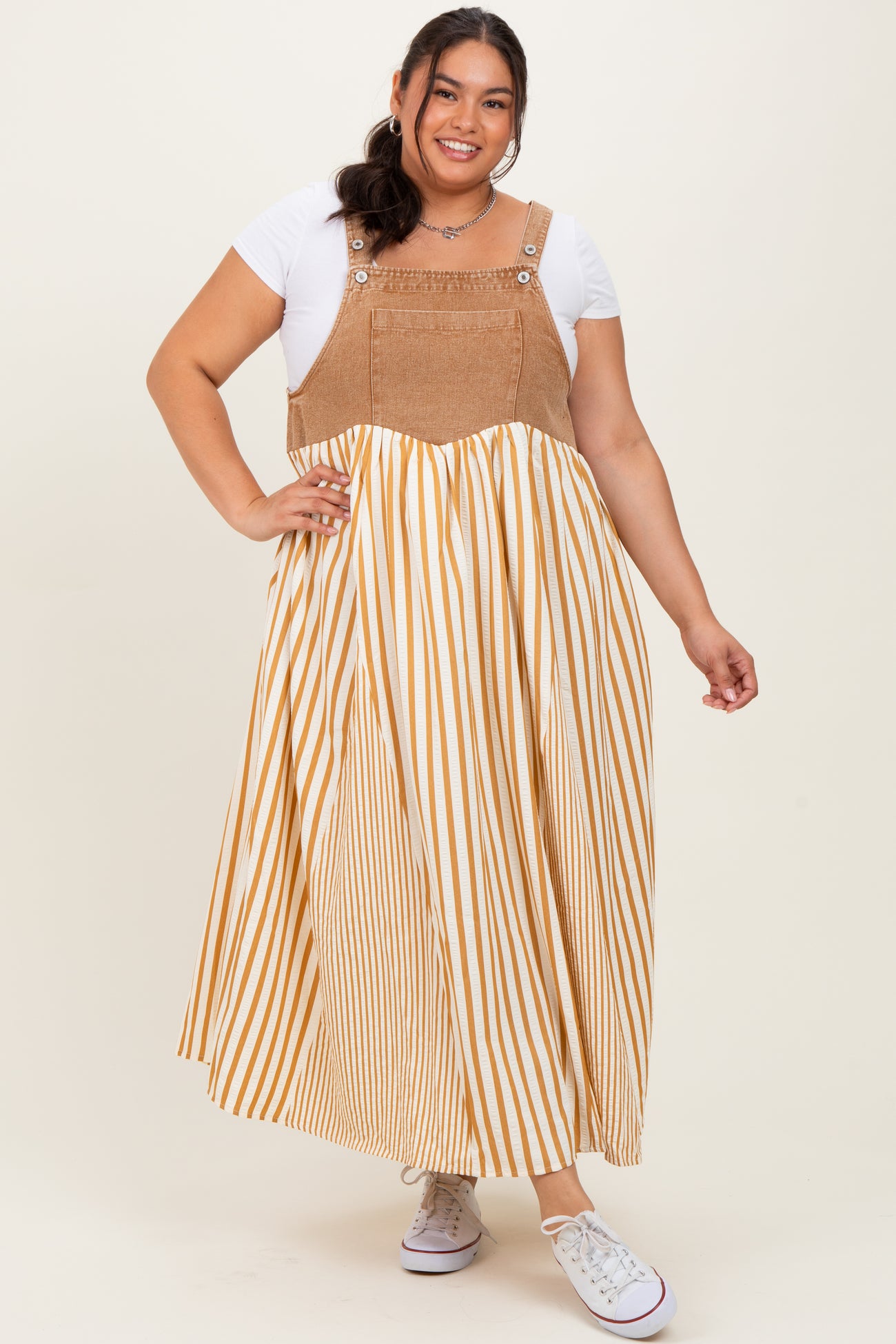 Camel Striped Colorblock Denim Contrast Plus Maxi Dress