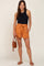 Details A pair of solid maternity shorts with a cinched elastic waist with tie detail and side pockets. Content + Care
