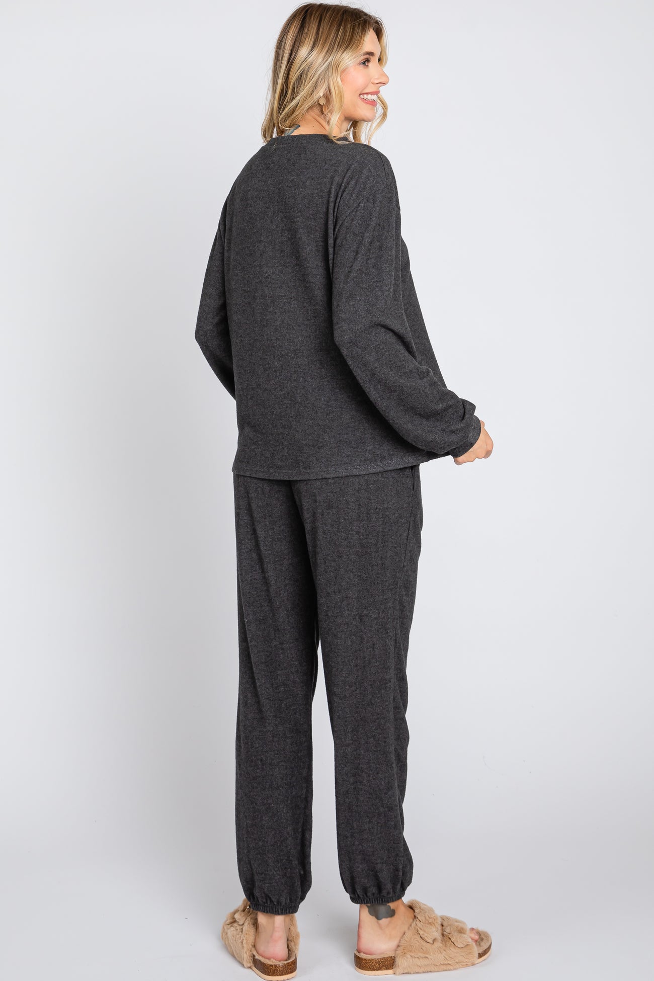 Charcoal Soft Knit Brushed Long Sleeve Lounge Set