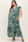 Cream-Green Floral Button Down Plus Maternity Maxi Dress