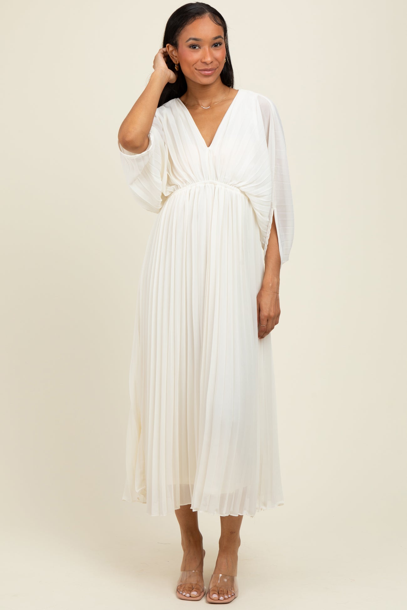 Elevate your wardrobe with our Cream Pleated V Neck Maxi Dress, a perfect blend of elegance and comfort. Featuring a flattering V neckline and delicate pleated detailing, this dress flows beautifully to a midi length for a graceful silhouette. The lightweight, breathable fabric drapes effortlessly, while the cinched waist offers a tailored fit that enhances your natural shape. Ideal for both casual outings and special occasions, pair it with heels or sandals for a versatile look that transitions seamlessly from day to night. Embrace timeless style with this must-have maxi dress.