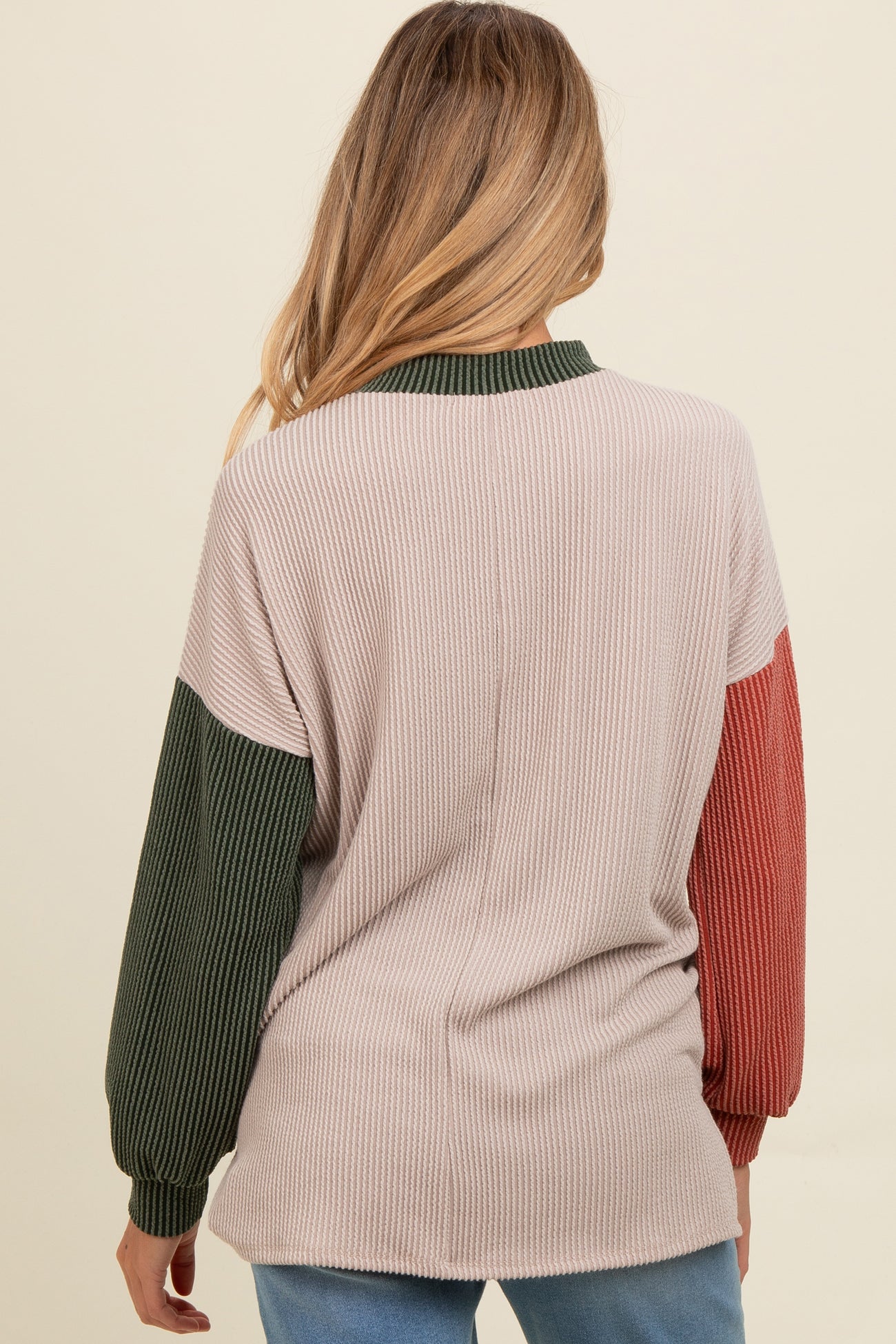 Cream Ribbed Colorblock Maternity Side Slit Top