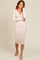 Cream Ribbed Fitted Button Long Sleeve Dress