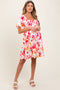 Cream Ribbon Print Smocked Midi Dress