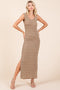 Cream Smocked Contrast Shoulder Tie Midi Dress