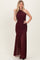 Dark Burgundy Ruched Mesh One Shoulder Maxi Dress