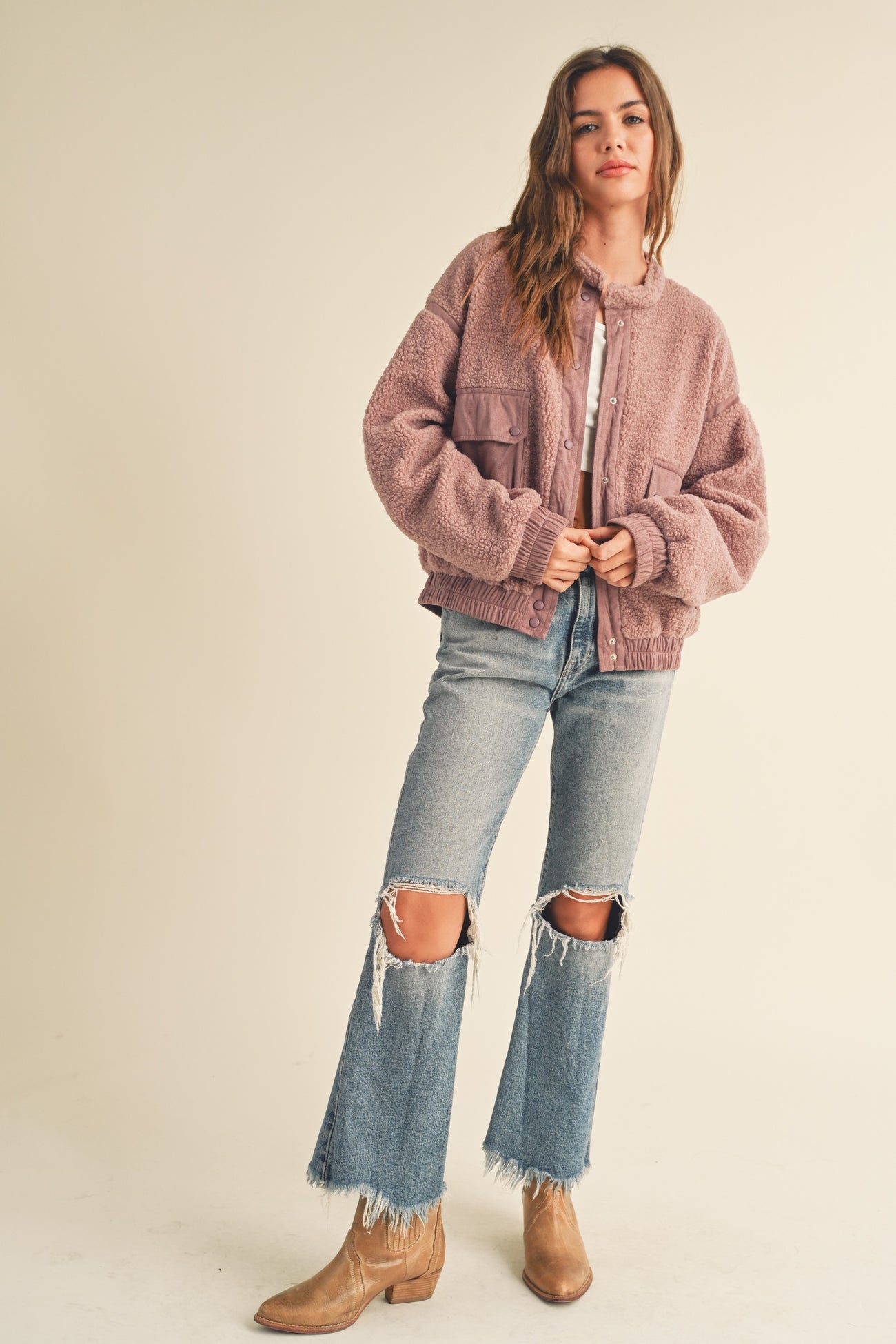 Dusty Rose Faux Fur Suede Contrast Jacket