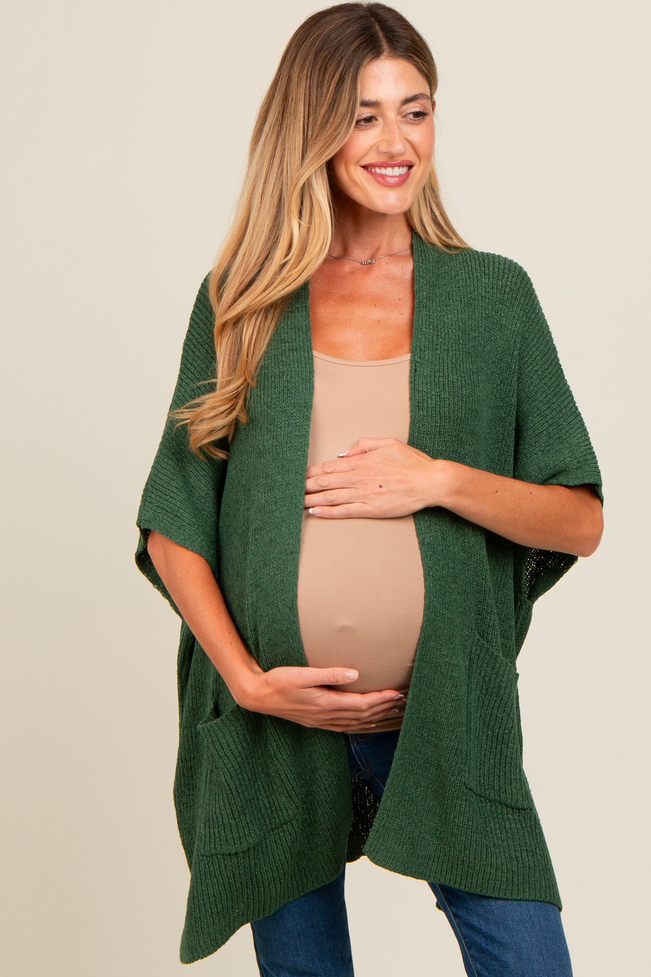 Forest Green Drop Shoulder Side Pocket 3/4 Sleeve Maternity Cardigan