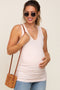 A striped knit, oversized maternity sweater featuring a crew neckline, long sleeves and side slits.