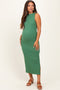 A maternity plus size sweater with a ribbed rounded neckline, a ribbed hem, and long sleeves with button accents.