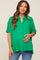 A solid hue maternity button up top. Features a collar, front functioning buttons, short dolman sleeves, and side slits at the hem.