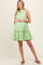 Green Gingham Button Front Collared Maternity Dress