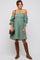 A dress featuring an off-shoulder neckline, a smocked elastic top, long puff sleeves and double lining.