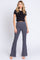Details A pair of solid leggings with a flare leg. Includes full pane elastic belly band. Material has high stretch. Content + Care