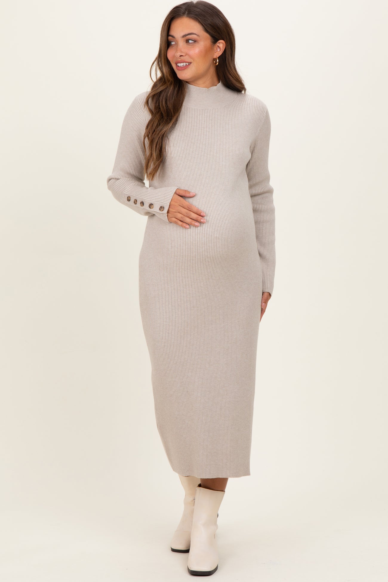 Heather Grey Button Sleeve Sweater Maternity Midi Dress