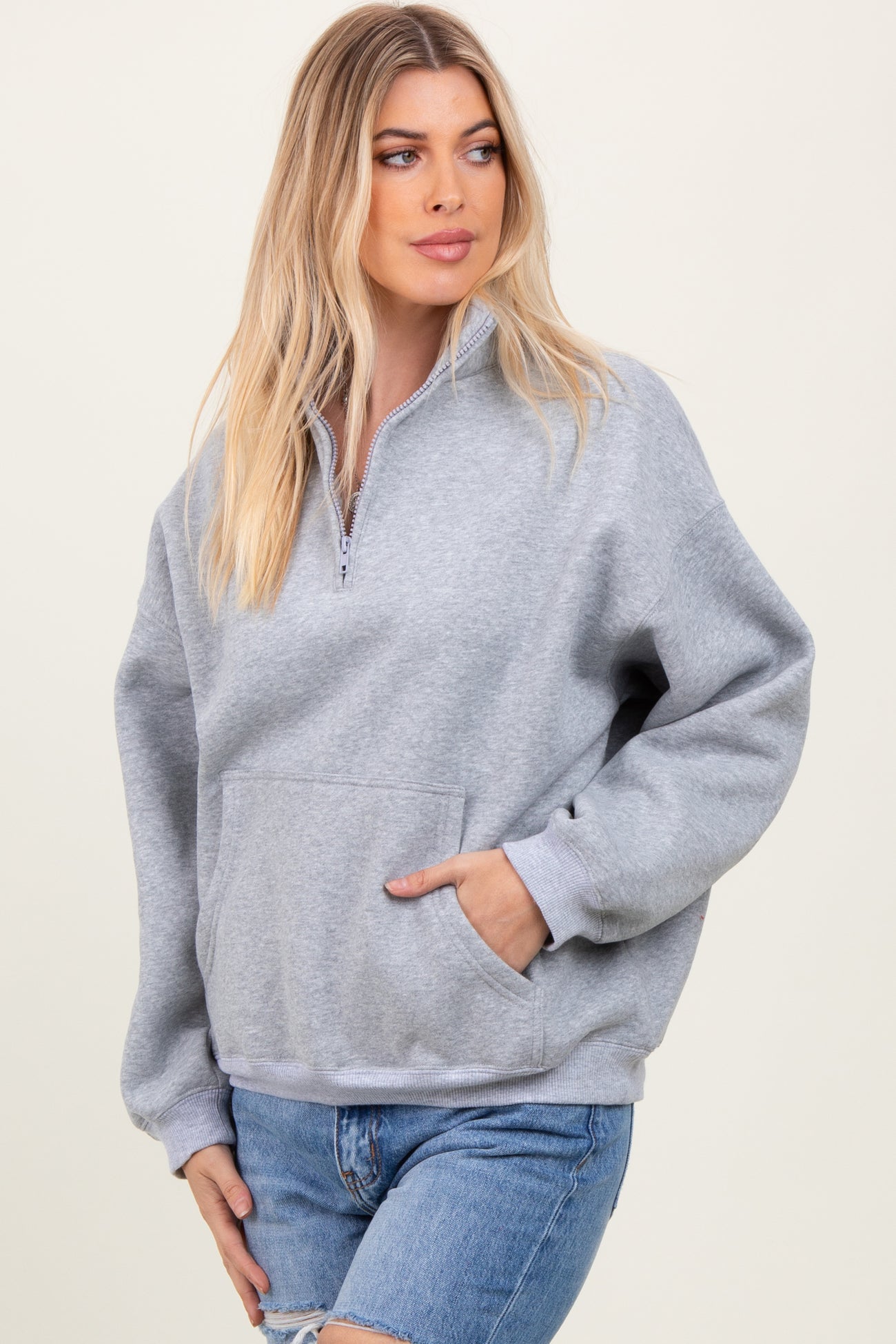 Heather Grey Fleece Oversized Half Zip Maternity Pullover