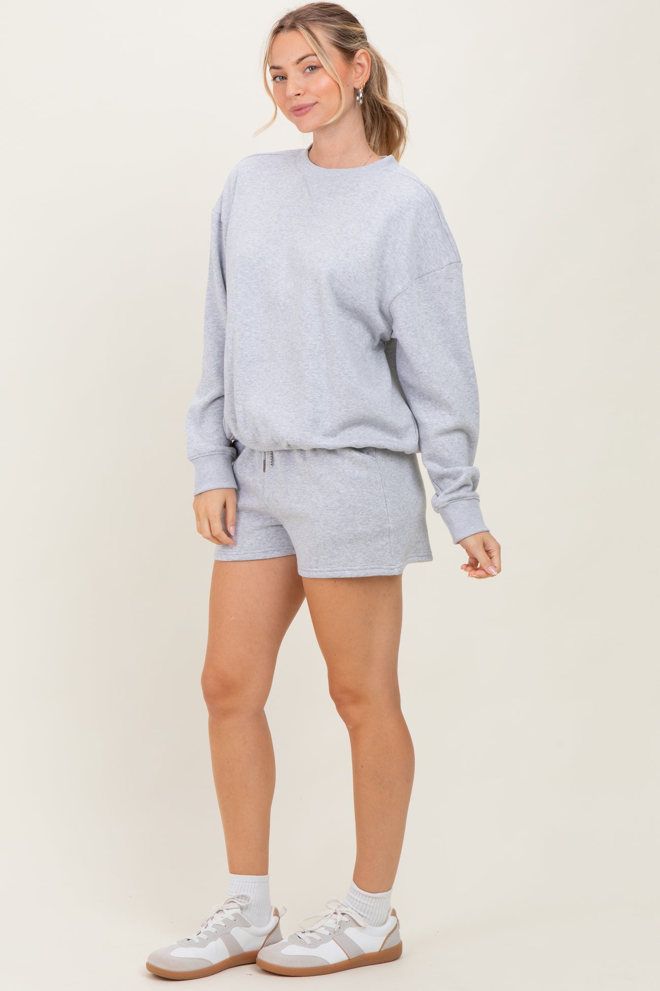 Heather Grey Fleece Sweatshirt Shorts Set