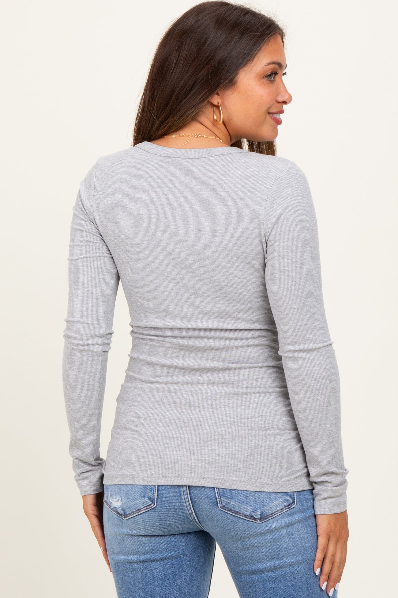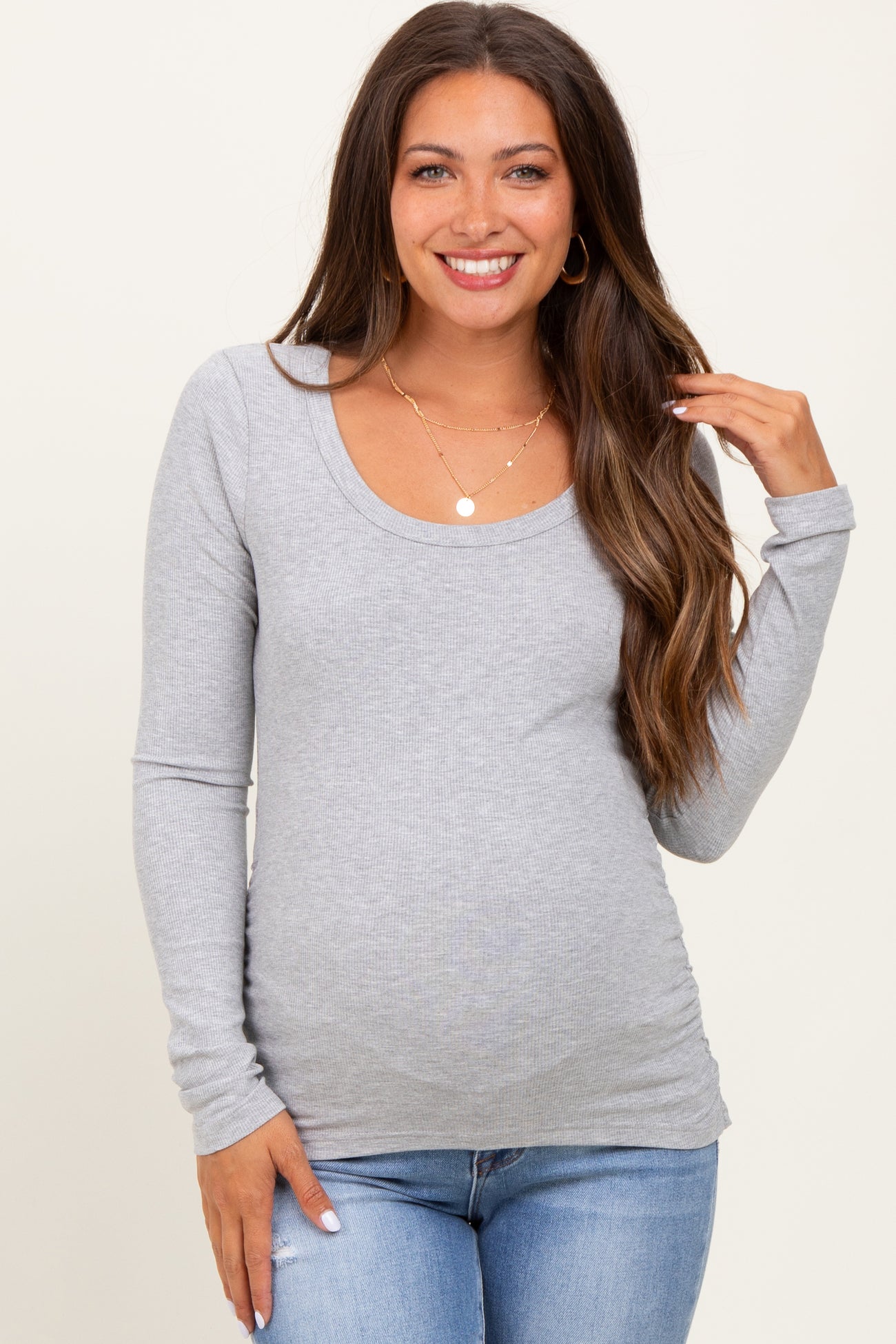 Heather Grey Ribbed Ruched Maternity Long Sleeve Top