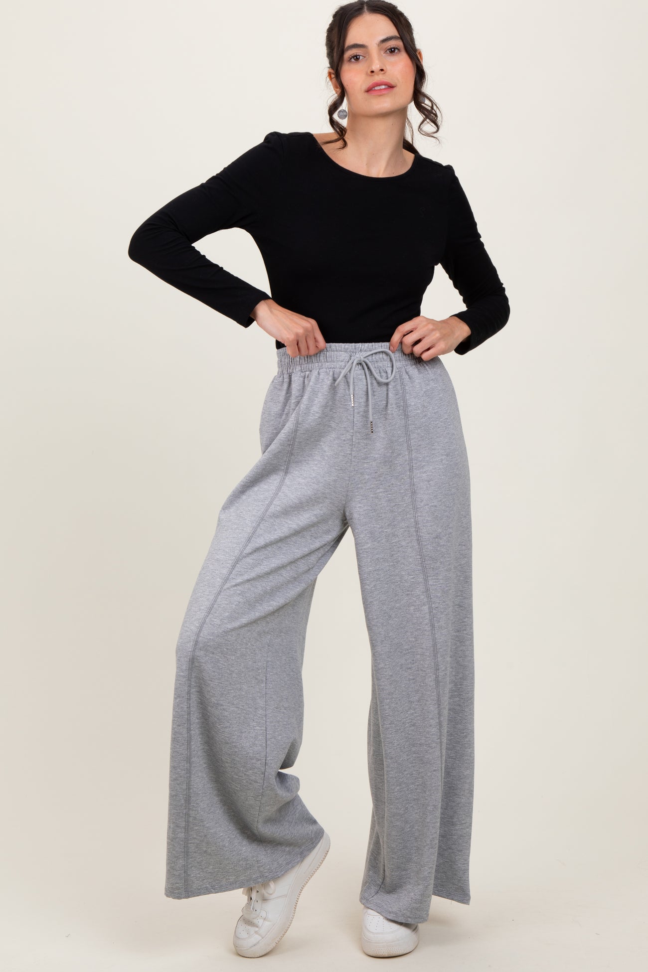 Experience ultimate comfort and style with our Heather Grey Wide Leg Drawstring Maternity Sweatpants. Designed to accommodate your growing bump, these soft, breathable pants feature a relaxed wide-leg fit and an adjustable drawstring waistband for a customizable, secure fit throughout your pregnancy. The versatile heather grey color pairs effortlessly with any top, making them perfect for lounging at home or casual outings. Crafted from premium stretch fabric, these sweatpants provide gentle support without sacrificing style. Elevate your maternity wardrobe with comfort and ease in mind!